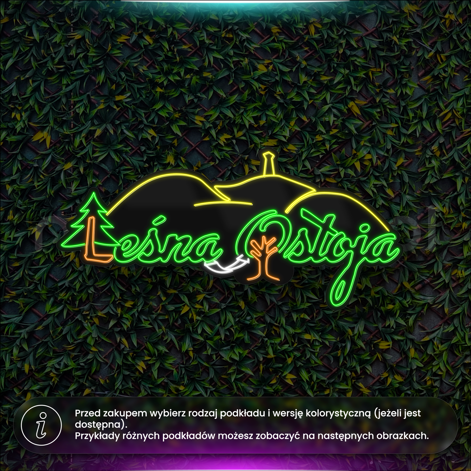 Cześć, oto Twój nowy neon LED. Wybierz podkład i opcje dodatkowe w celu złożenia zamówienia.